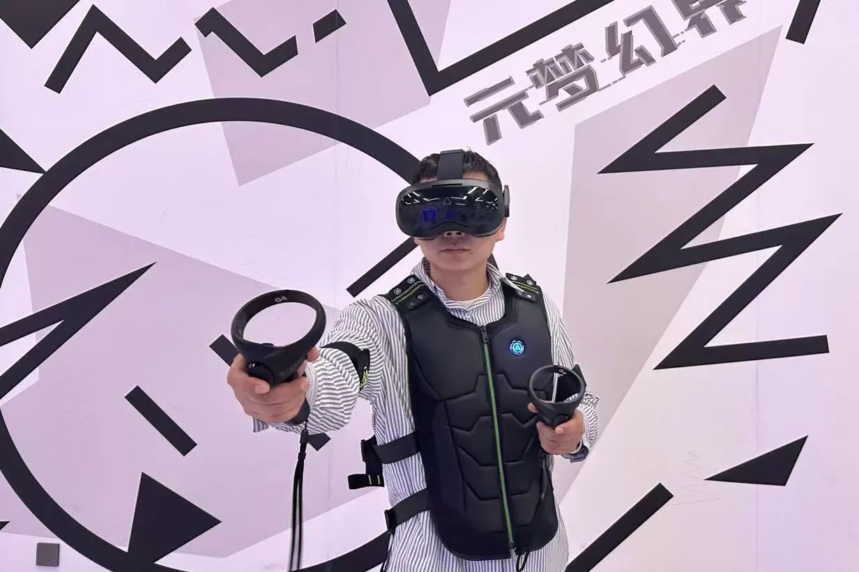穿上體感服,每一個(gè)動(dòng)作都與虛擬世界同步,舉槍射擊、隔空取物,仿佛真的闖入另一個(gè)次元。