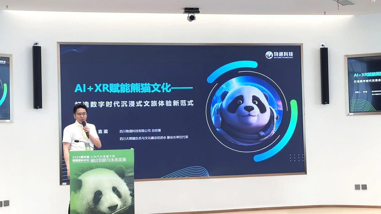 四川省大熊貓生態(tài)與文化建設(shè)促進(jìn)會副會長單位——四川物通科技有限公司(以下簡稱“物通科技”)受邀參會,總經(jīng)理袁梁代表公司發(fā)表題為“AI+XR賦能熊貓文化——打造數(shù)字時(shí)代沉浸式文旅體驗(yàn)新范式”的主題演講,重磅發(fā)布線上線下融合的“大熊貓?jiān)钪嫔鷳B(tài)體驗(yàn)空間”。